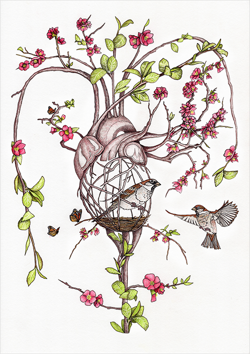 This work explores resilience and personal growth by merging botanical elements with human anatomy to symbolize our capacity to flourish.