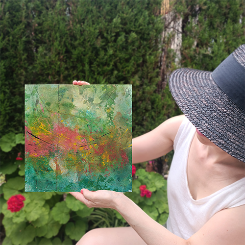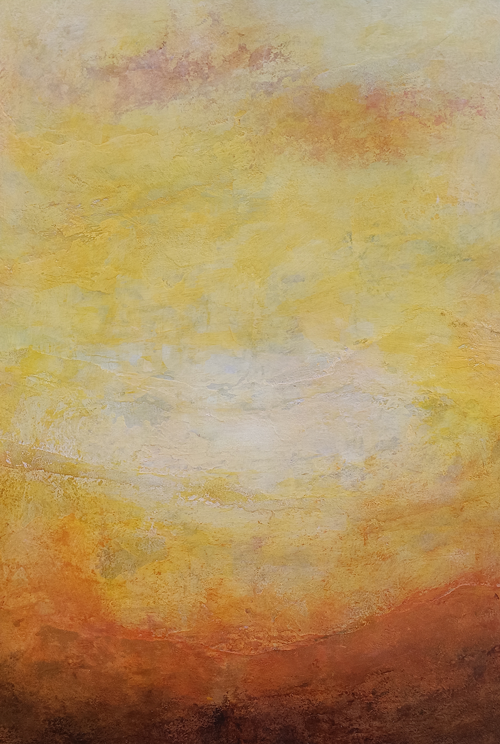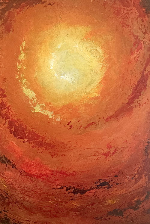 In humans, these elements represent the energies that infuse life, manifesting through emotions and mental states. Using an abstract style, I apply symbolic language and color psychology to explore the specific sensations and feelings associated with each element. All pieces are developed using acrylic paint on various substrates.
