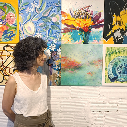 In the Maya series, I explore the invisible connections bees weave between plants through their flight paths and pollination. Using acrylics and mixed media to experiment with texture, this collection originated from my contribution to the collective exhibition "¿Quién verá las últimas abejas?" (Who will see the last bees?).