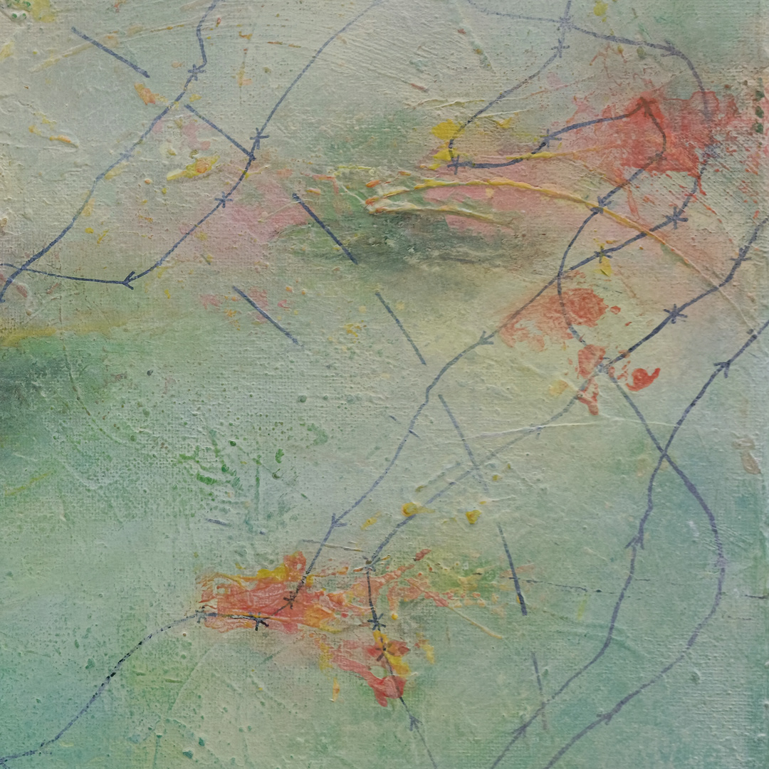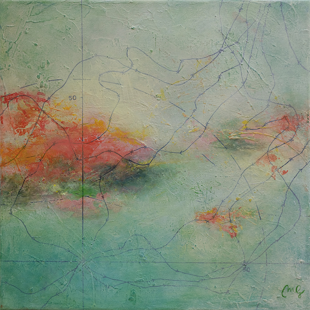 Pollen Islands is a painting inspired by the flying routes of bees and their pollination work.